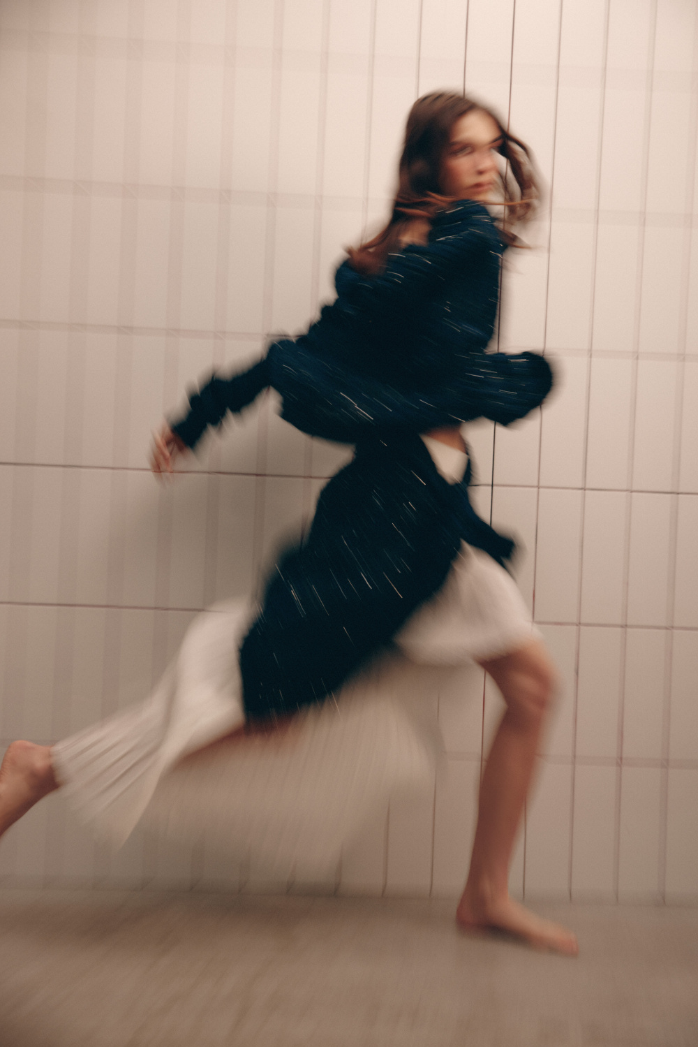 В основе коллекции — невесомый шелк и дышащий хлопок премиум-качества. Они задают особую пластику изделиям, делают их живыми, откликающимися на движение и свет: платья, топы-туники и легкие брюки, в которых чувствуется воздух, солнце и гармония. Особая роль отведена цвету: доминирует мраморный оттенок — отсылка к камню, из которого возведён стадион Панатинаикос, месту первых Олимпийских игр.