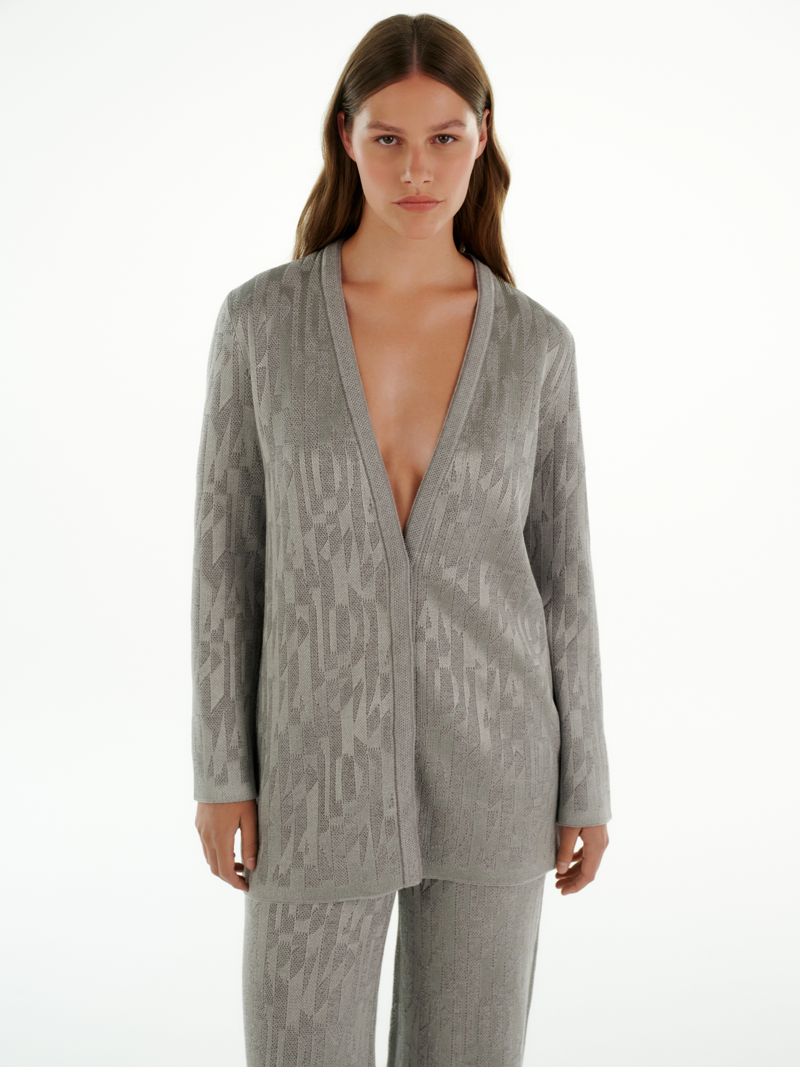 Удлинённый кардиган выполнен из шерсти мериноса с добавлением вискозы, благодаря чему сочетает мягкость и тепло. Прямой силуэт подчеркивает естественную линию фигуры, сохраняя свободу движения.