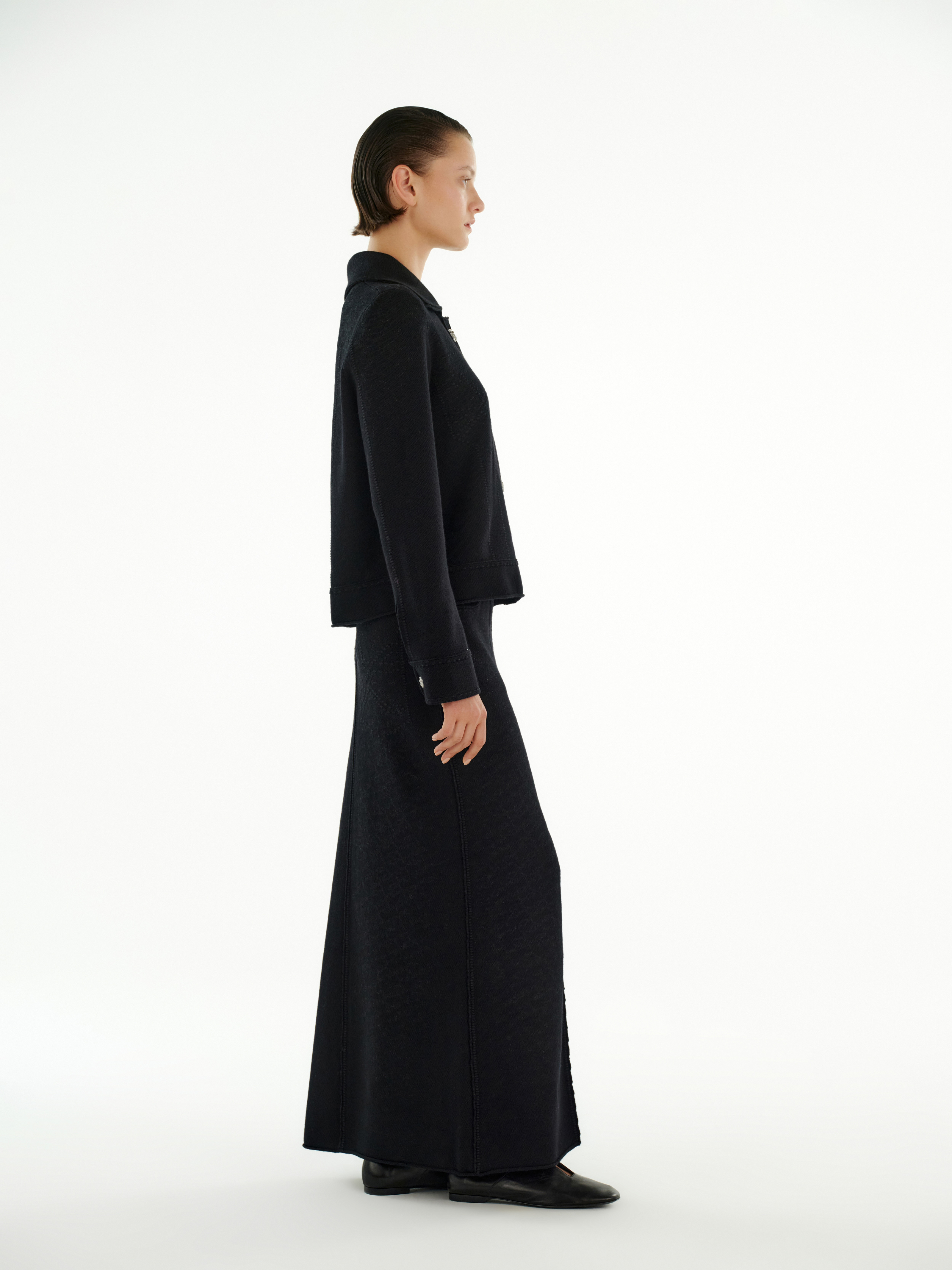 Жакет прямого силуэта из мягкой шерсти мериноса с добавлением хлопка и вискозы. Материал держит форму и при этом остается пластичным, подчеркивая аккуратность линии. Классический воротник и застежка на пуговицы подчеркивают лаконичность кроя.