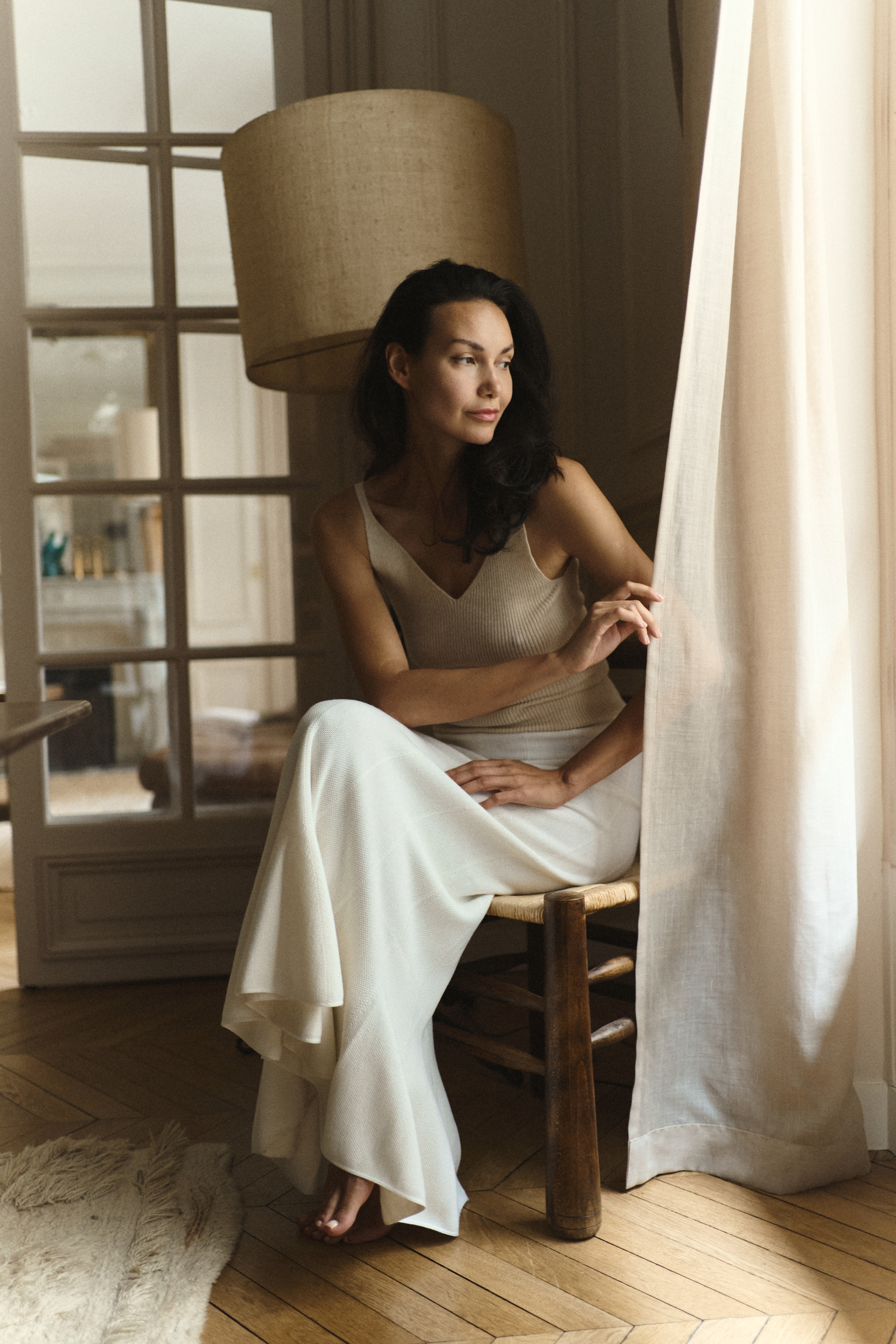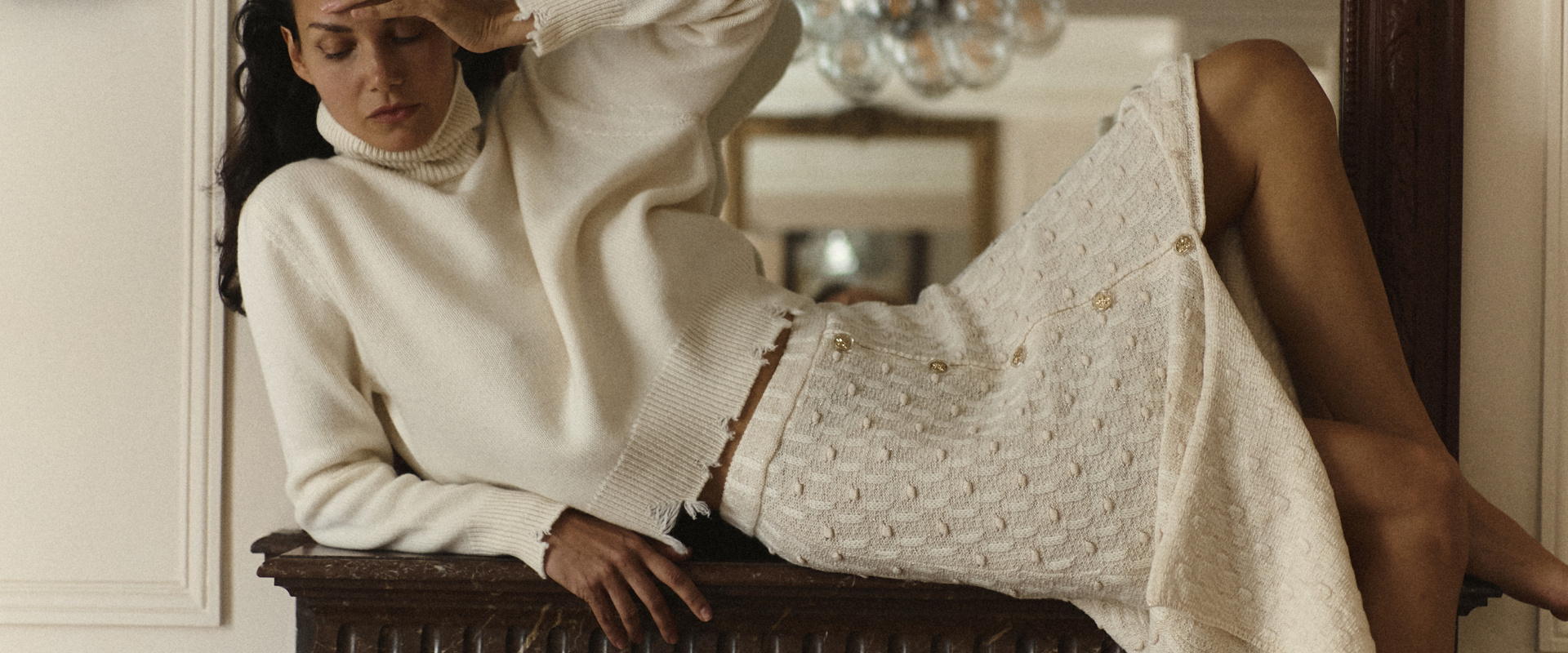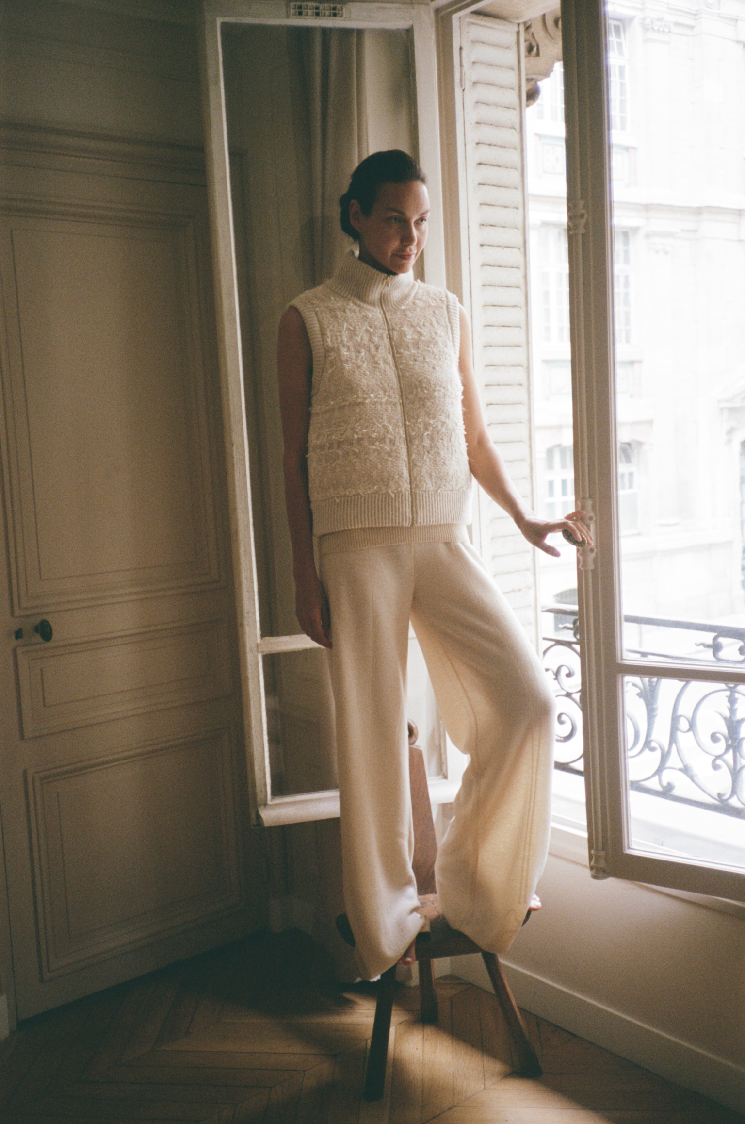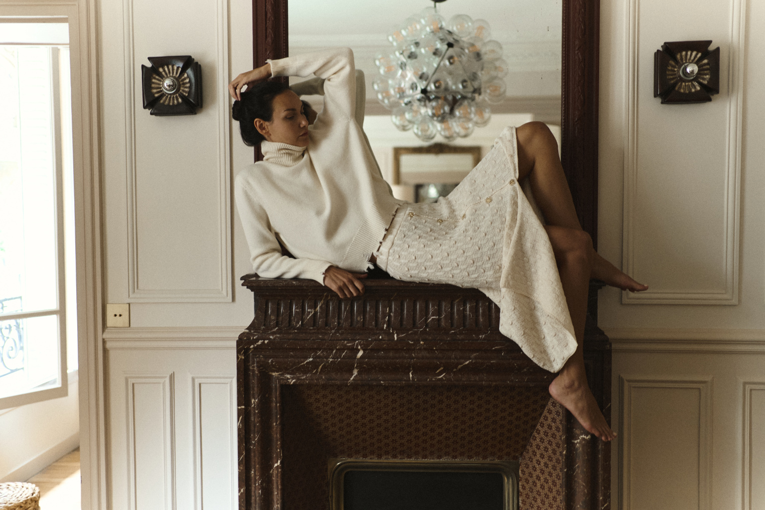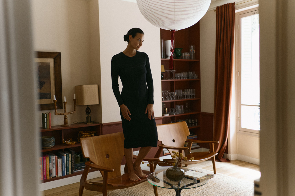 Здесь, среди архитектуры, в которой прошлое соседствует с новейшими формами, рождается тот же диалог, что и в коллекции — женственность силуэтов соединяется с инновационным подходом к трикотажу, а практичность и долговечность находят отклик в ценностях французской культуры.