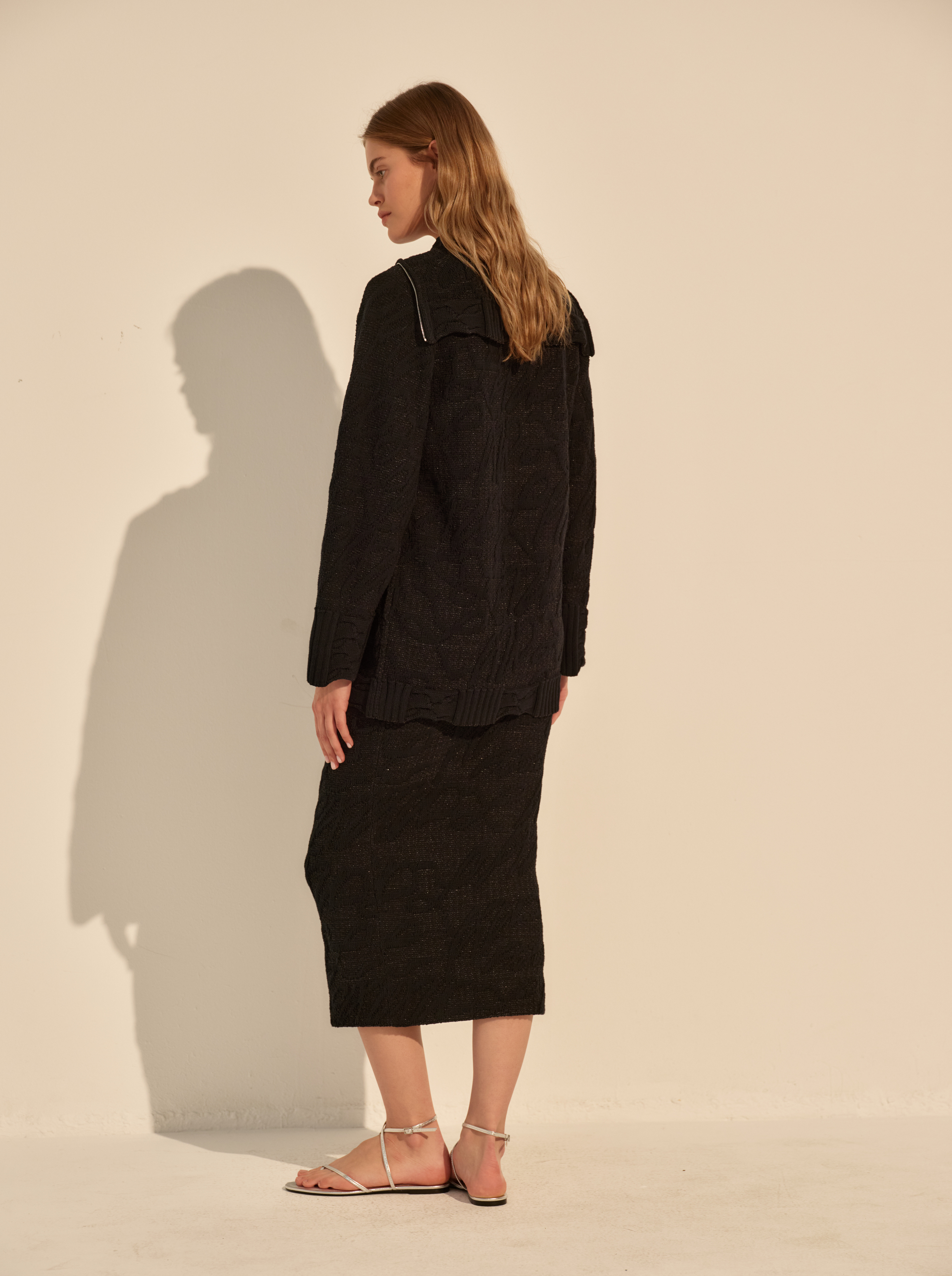 Модель легко работает в комплекте с трикотажными жакетами или кардиганами, но так же уверенно смотрится с лаконичными топами. Это спокойное, продуманное изделие для повседневных образов с ощущением тактильного комфорта.