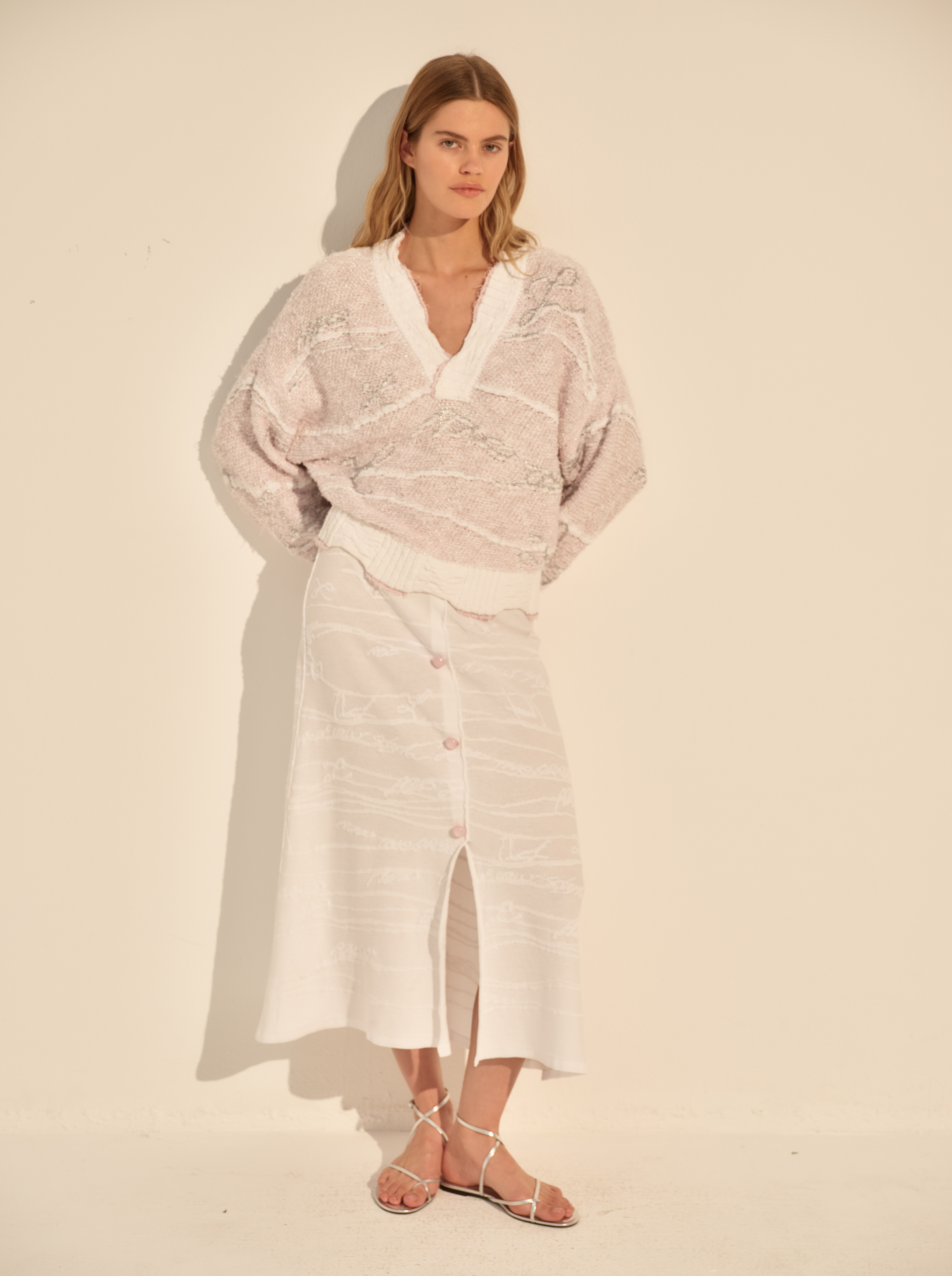 Модель легко сочетается с юбками и брюками из коллекции, а также работает как самостоятельный акцент в спокойных образах.