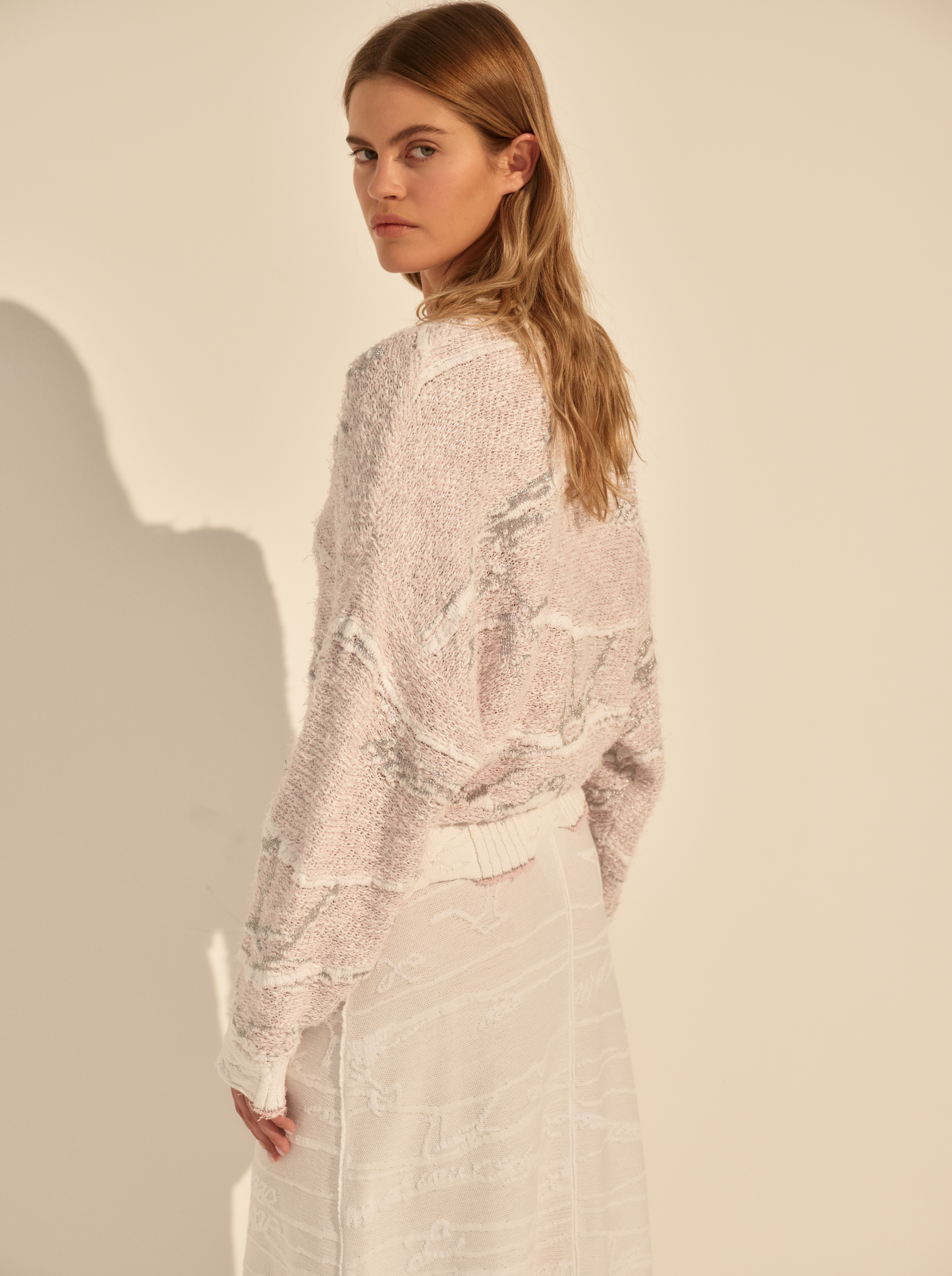 Джемпер Neva выполнен из смесового хлопкового трикотажа — материал лёгкий, структурный и устойчивый к форме. Свободный силуэт с мягкой посадкой создаёт расслабленную линию и комфортно ложится по фигуре.