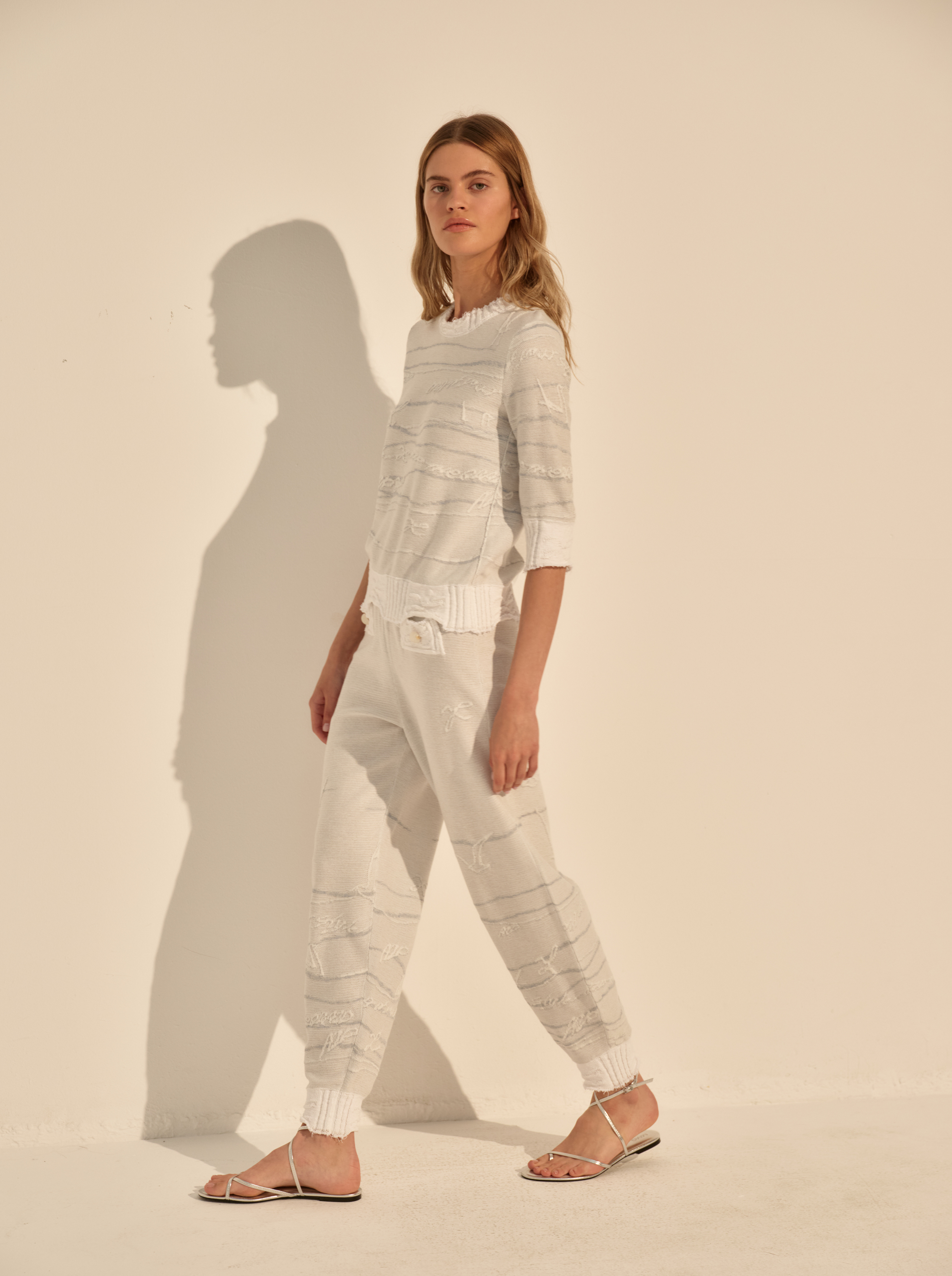 Джемпер Neva из хлопка с добавлением вискозы выполнен из мягкого трикотажа, который держит форму и комфортен в носке. Полуприлегающий силуэт и рукав 3/4 создают аккуратную, собранную линию, подходящую для тёплого сезона и многослойных образов.