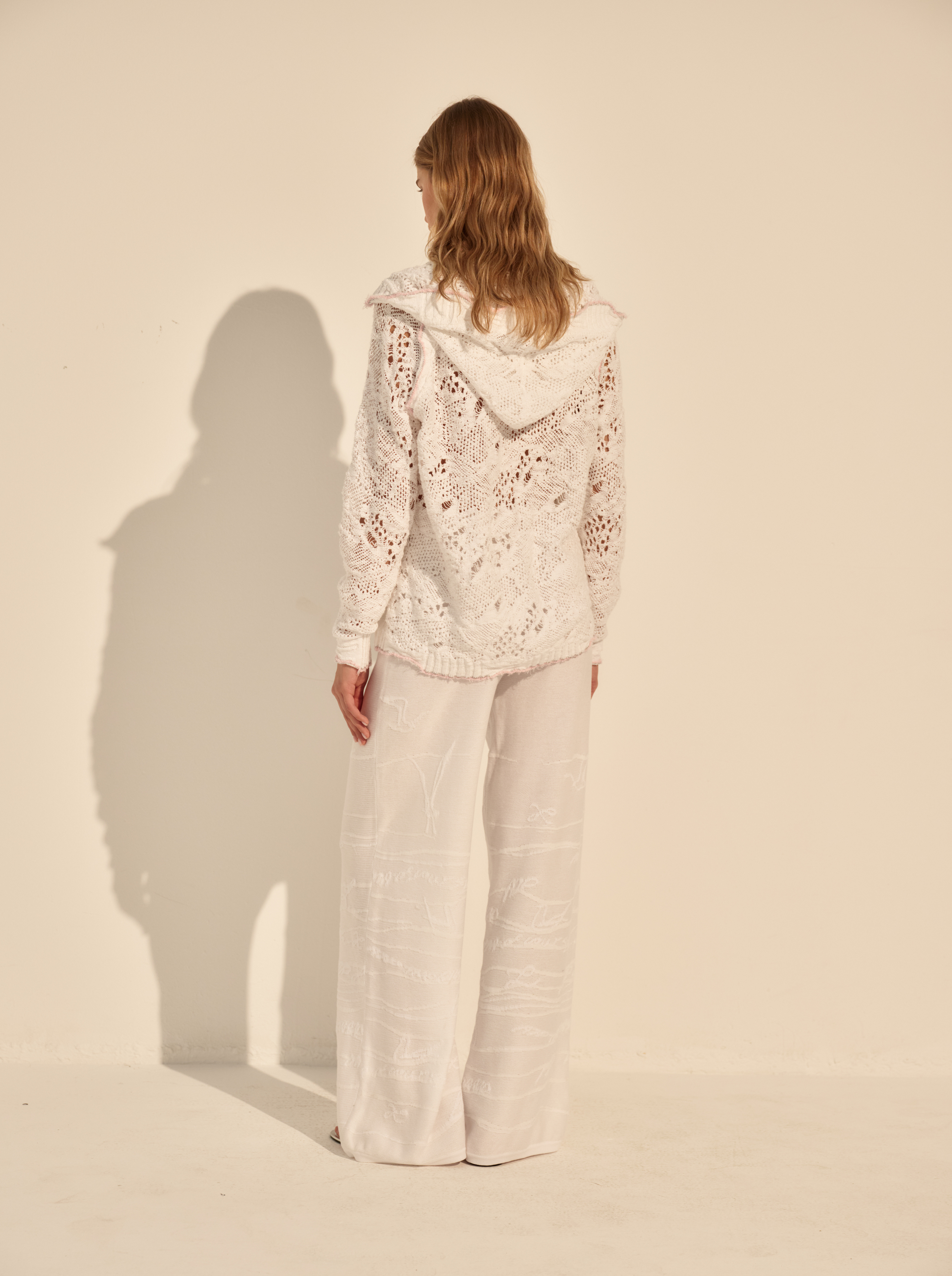 Легкая фактура добавляет глубину образу, оставаясь в рамках сдержанной эстетики. Брюки органично сочетаются с трикотажными топами и джемперами, создавая цельный и спокойный комплект.