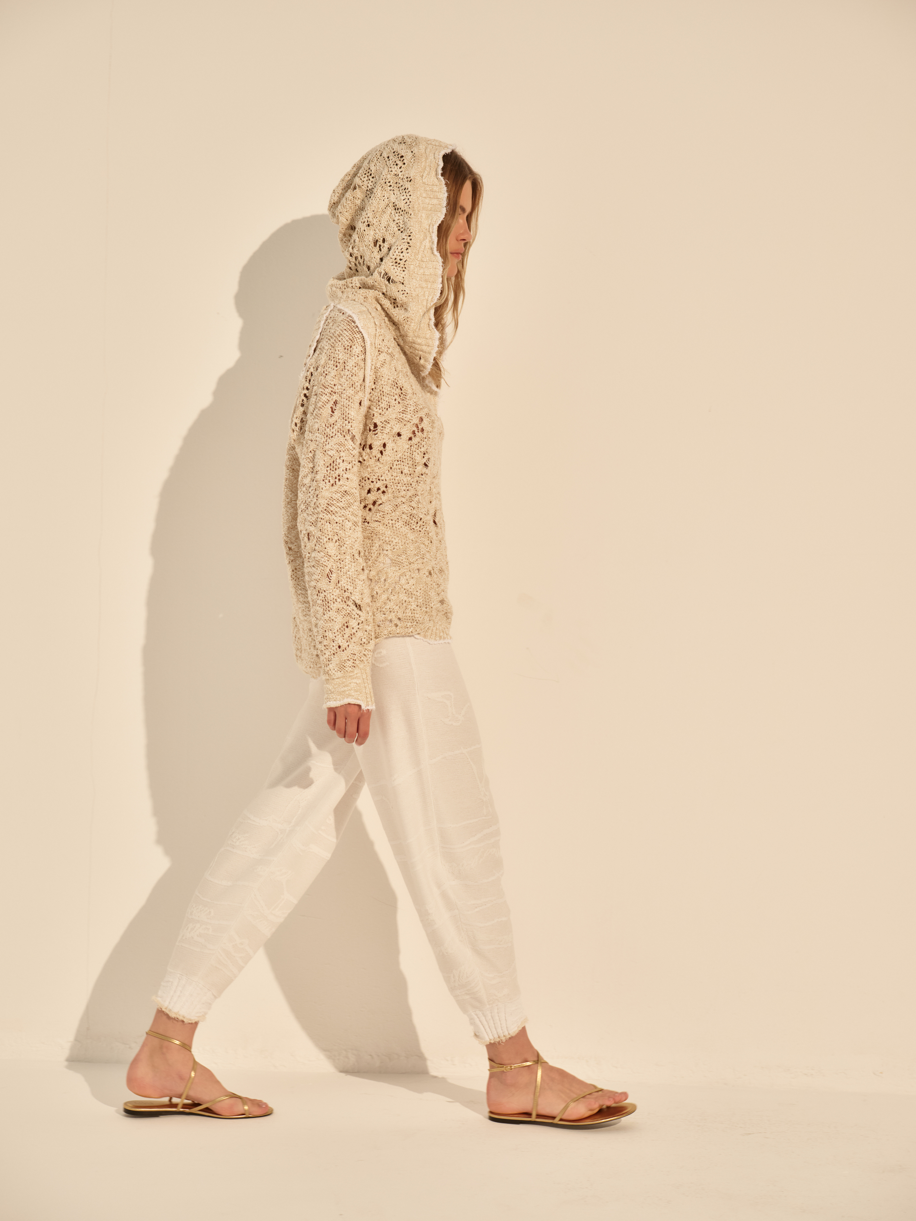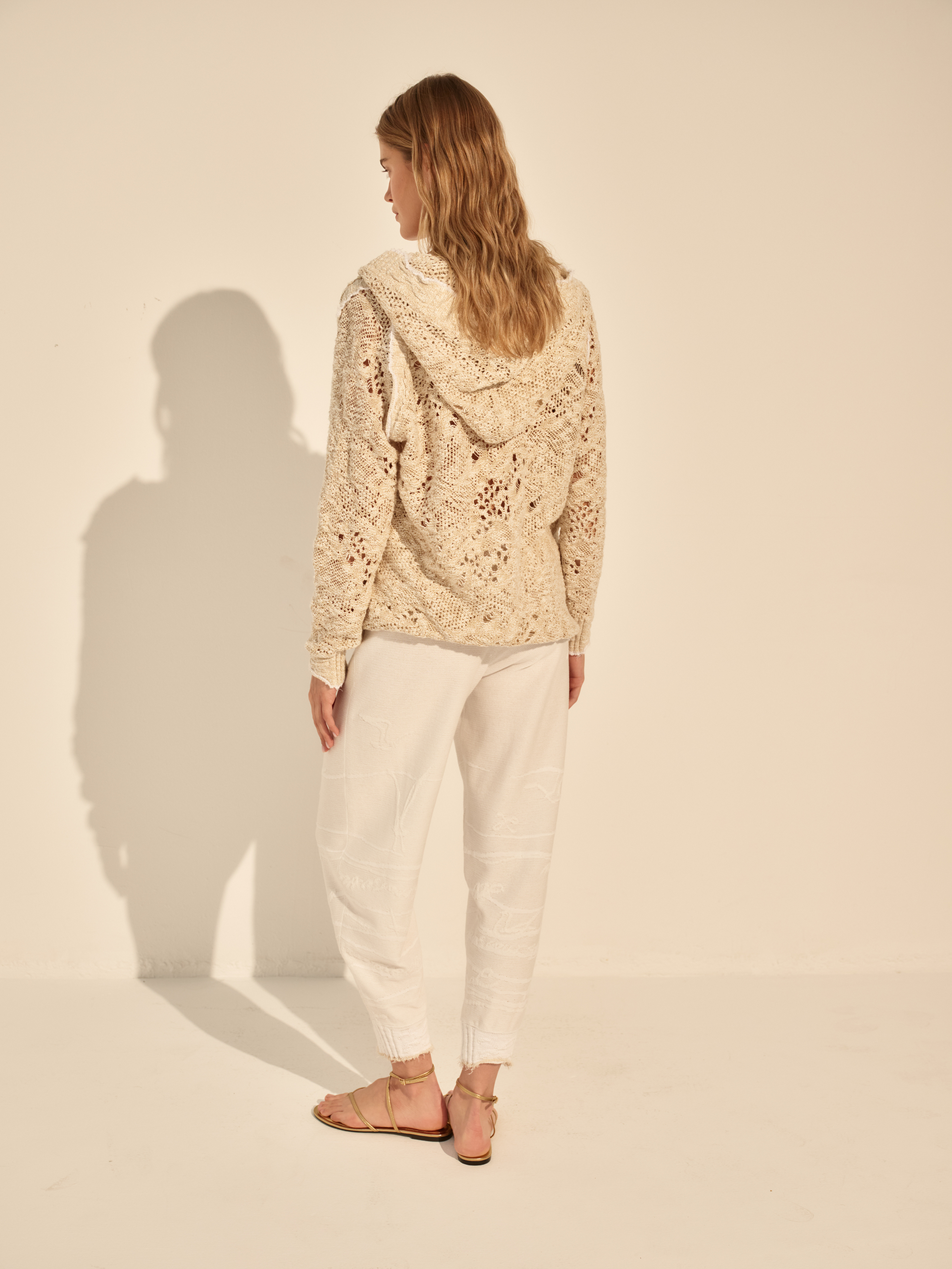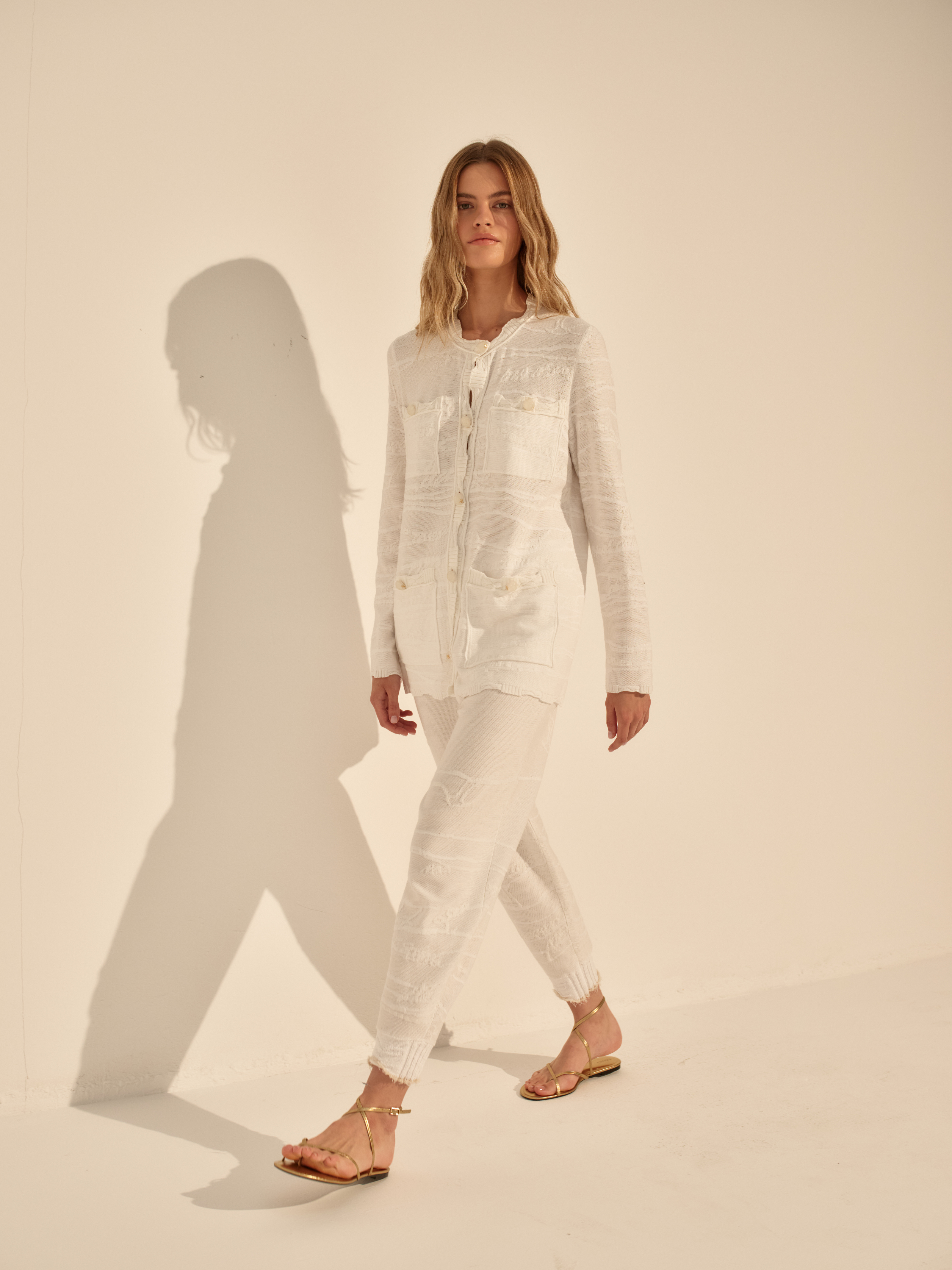 Молочный оттенок делает модель универсальной — брюки легко сочетаются с базовыми топами, рубашками и трикотажем, позволяя создавать как повседневные, так и более утончённые образы.