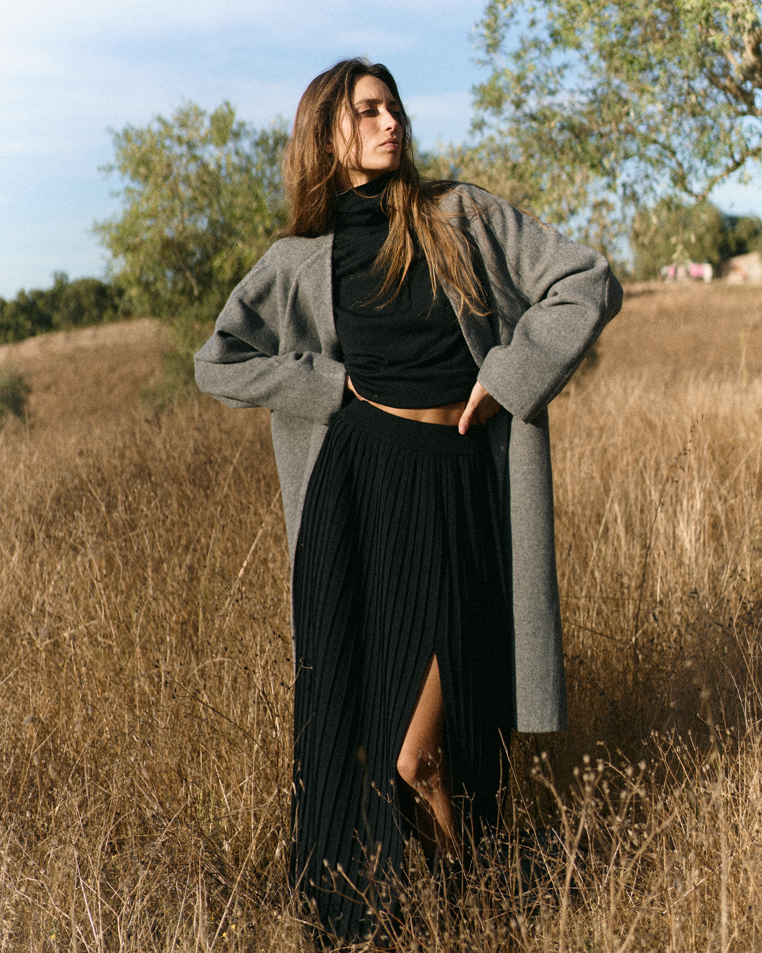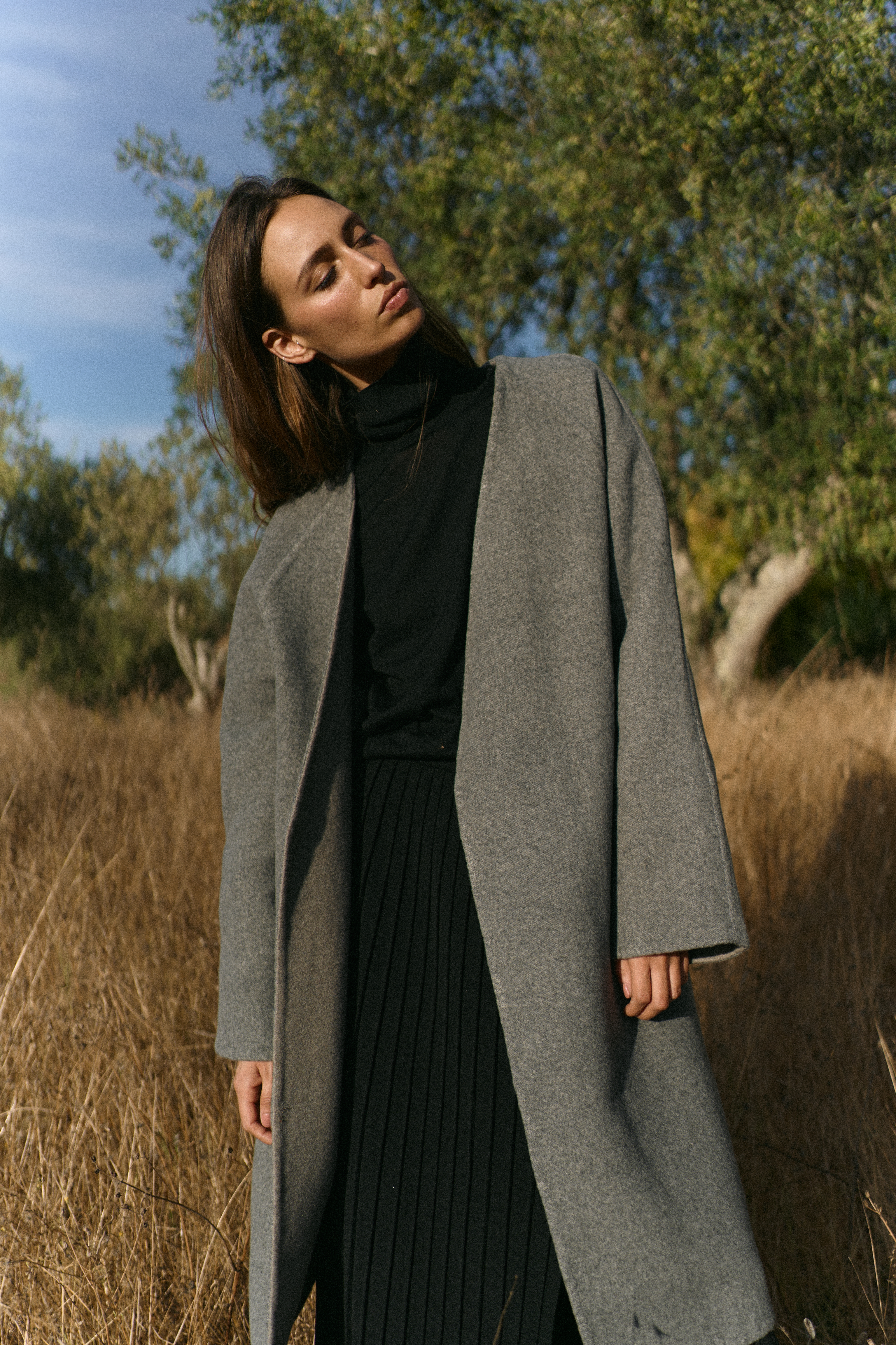 Модель легко адаптируется под разные слои, оставаясь универсальной основой в гардеробе благодаря сдержанному оттенку и чистой геометрии кроя.