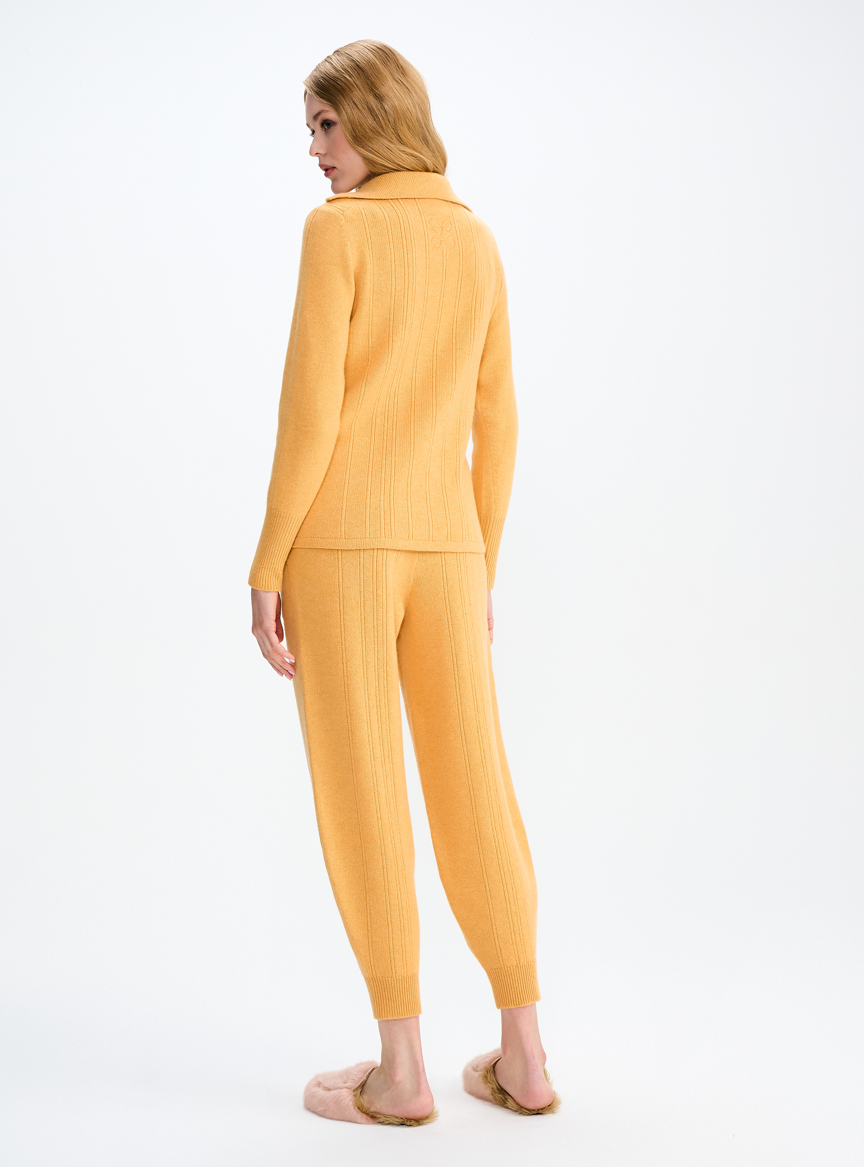 Брюки-джоггеры из кашемира выполнены в прямом силуэте, который сохраняет баланс между расслабленной формой и аккуратной посадкой. Мягкий кашемир делает модель особенно комфортной для повседневной носки.