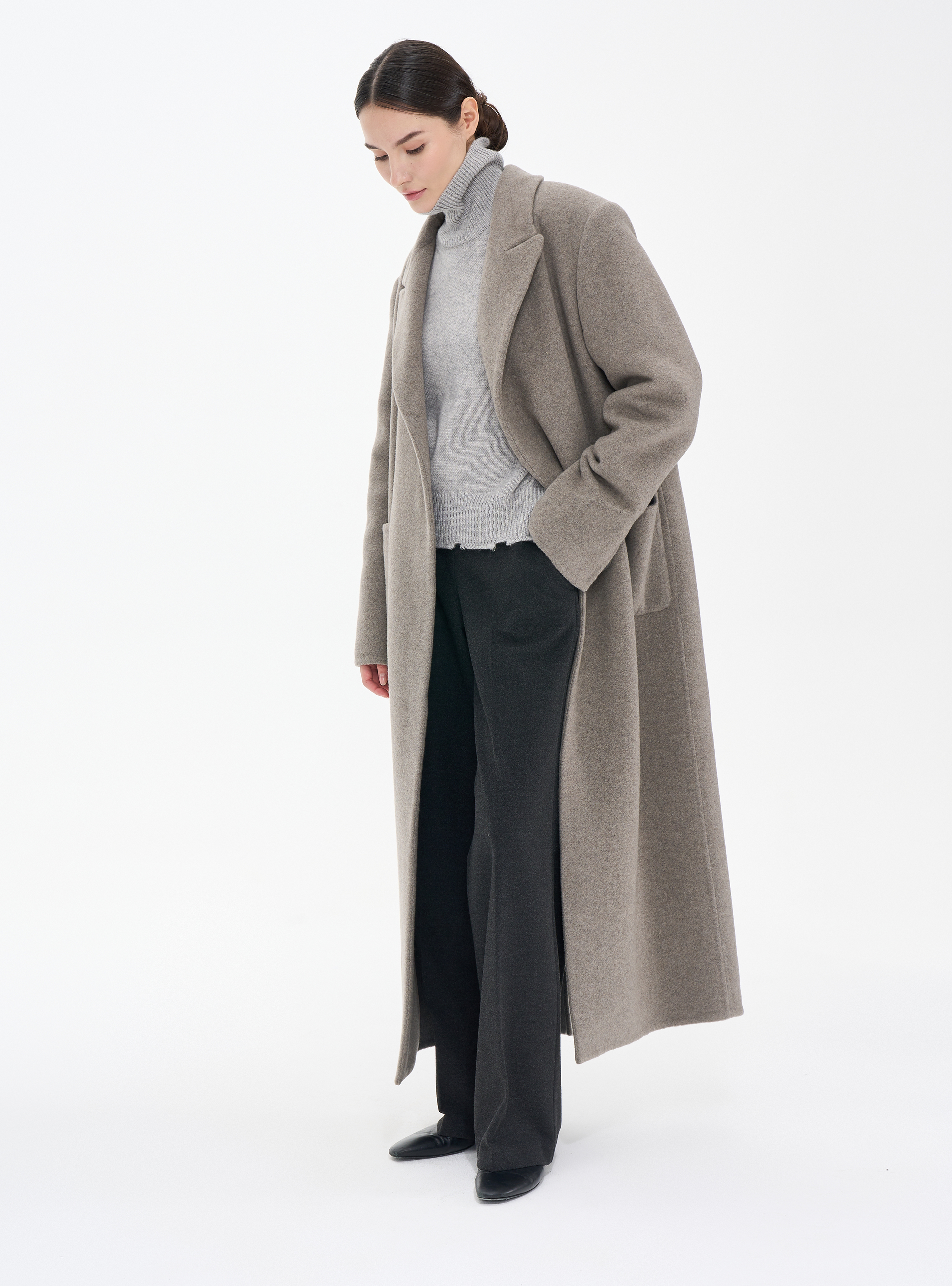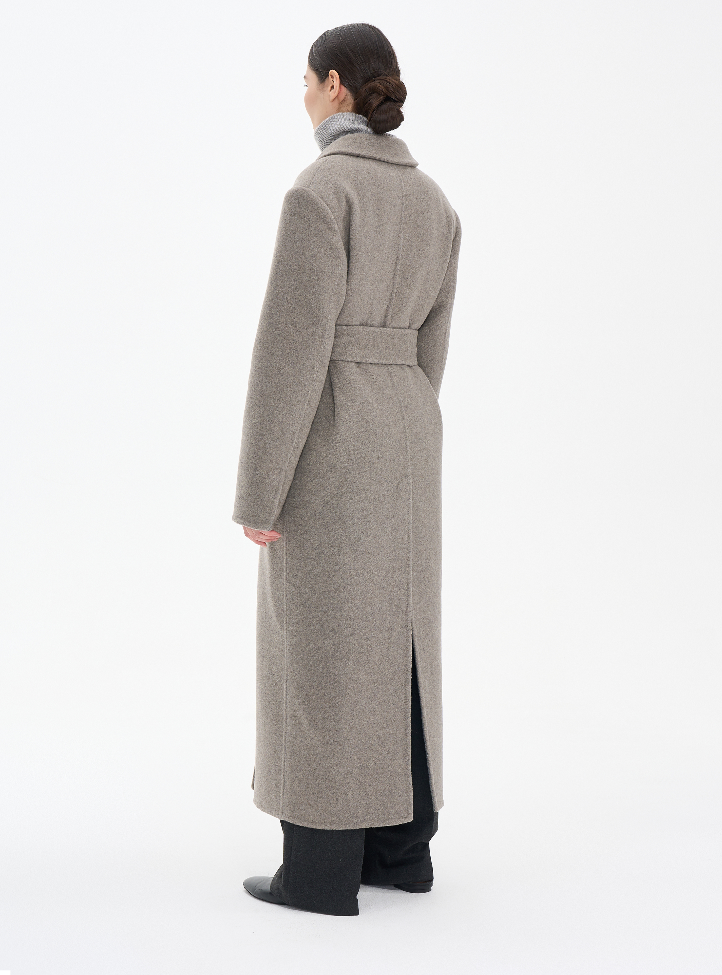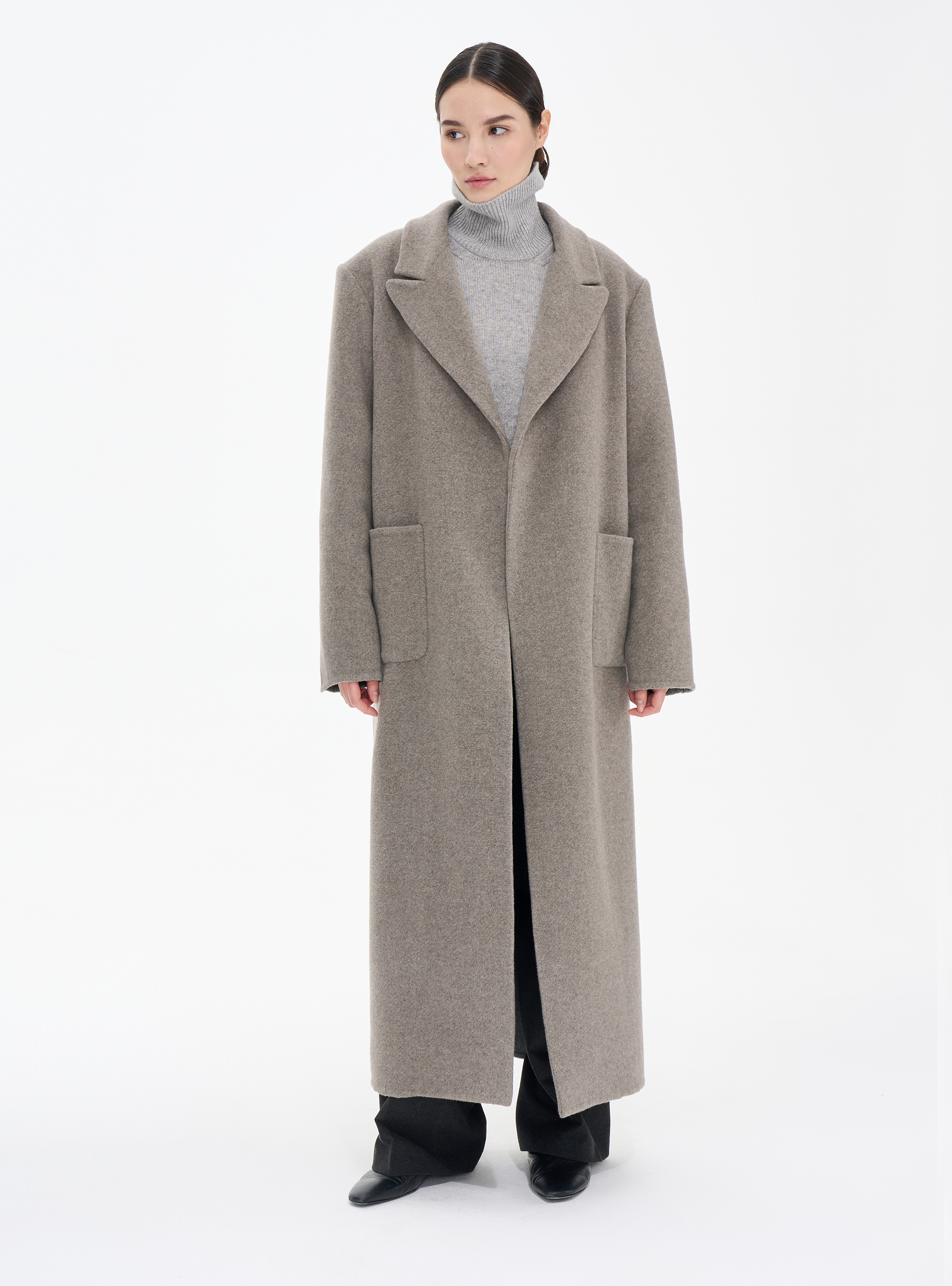 Длинное пальто из кашемира (double cashmere) премиального качества с отложным воротником