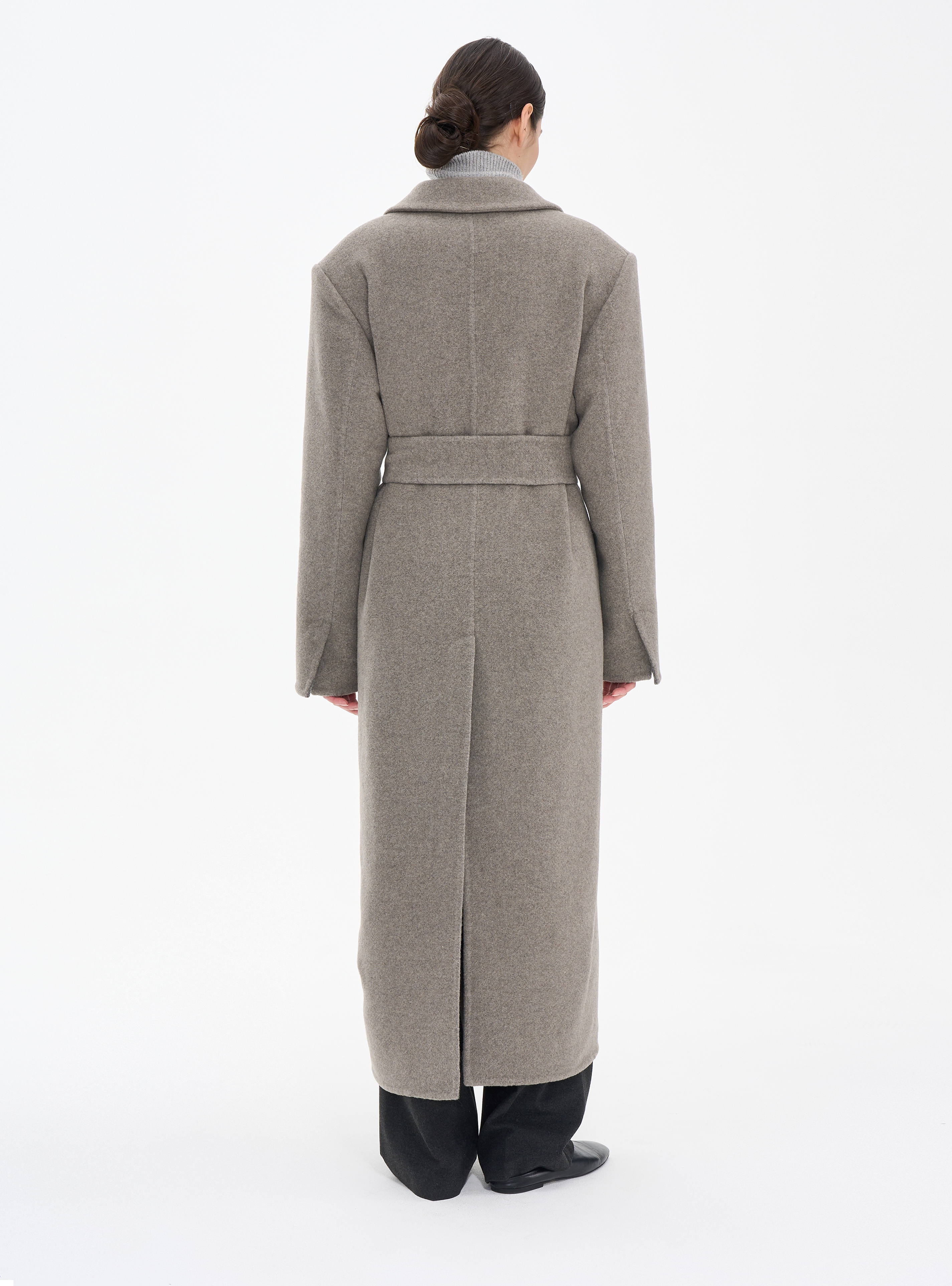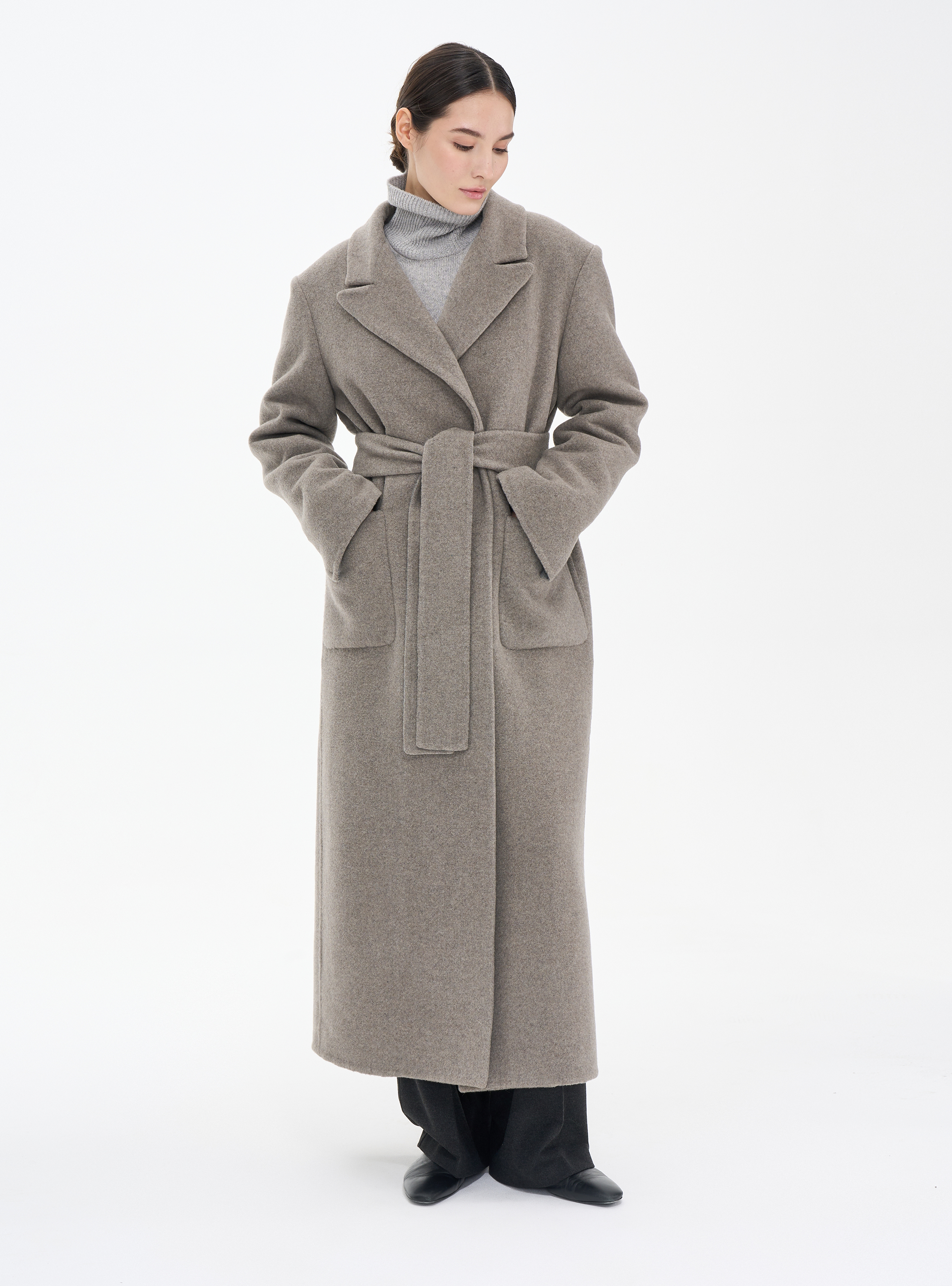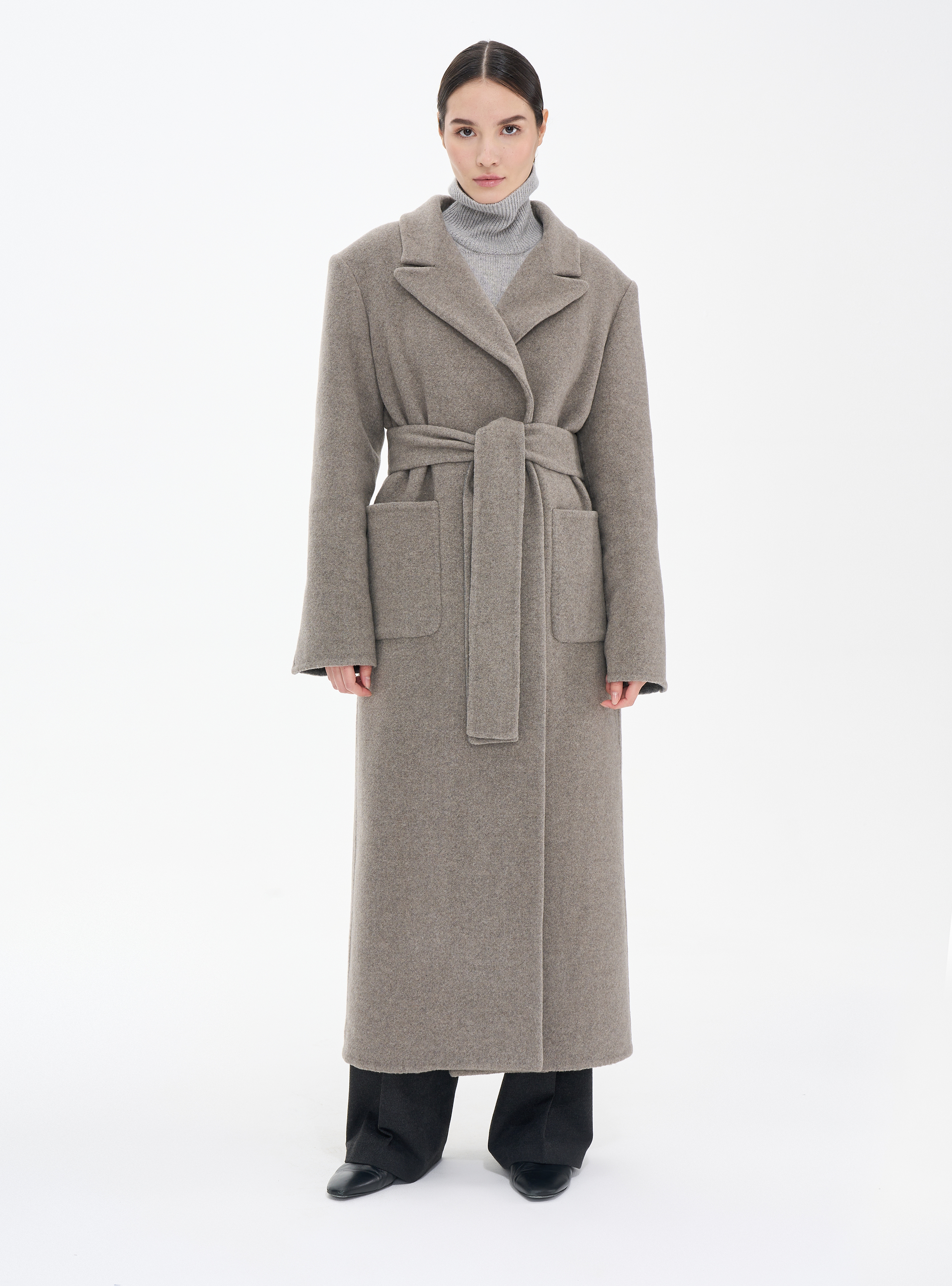 Длинное пальто из кашемира (double cashmere) премиального качества с отложным воротником