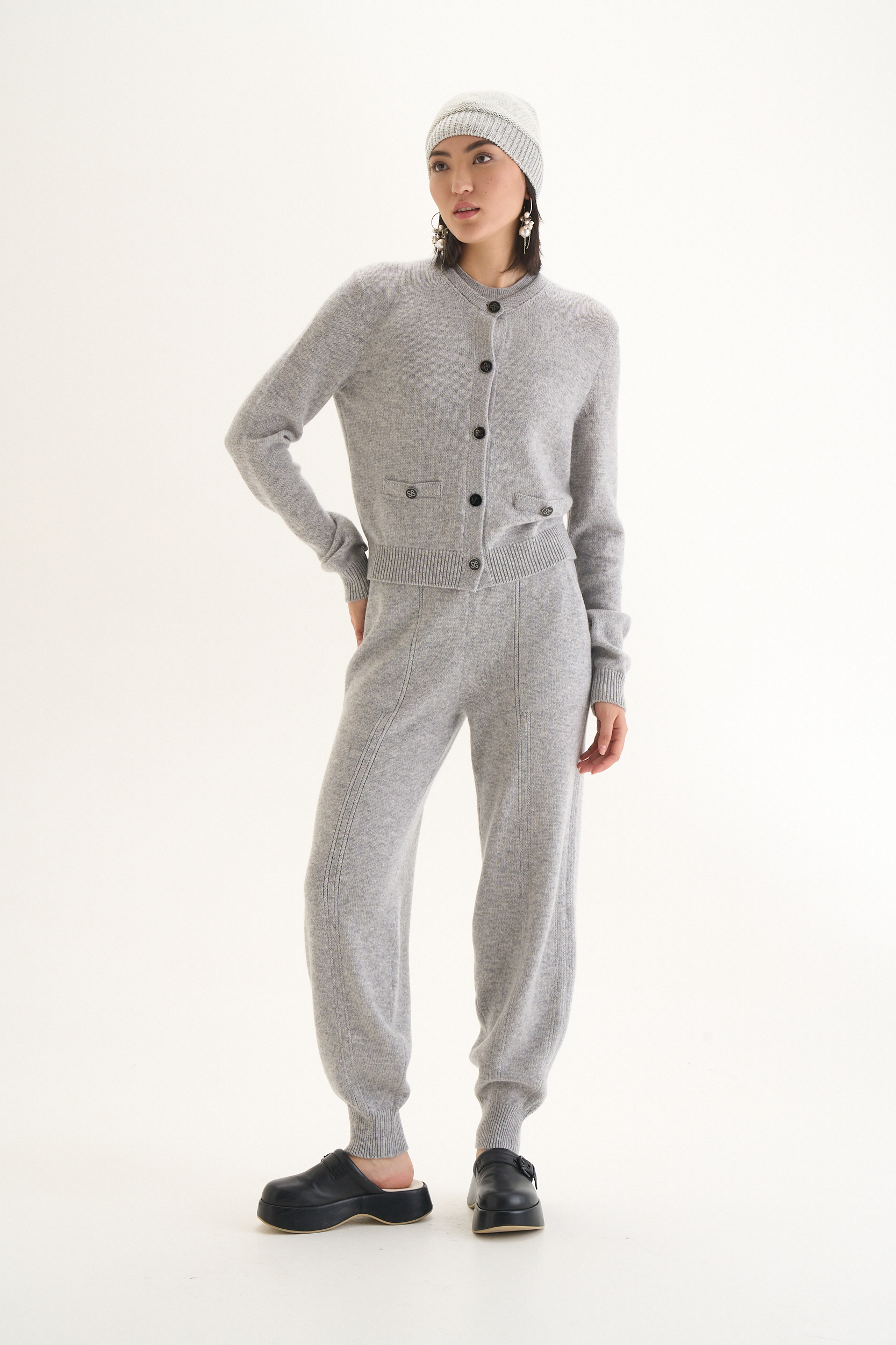 Брюки-джоггеры из кашемира — комфортная базовая модель с акцентом на форму и посадку. Мягкое кашемировое полотно приятно прилегает к телу и сохраняет аккуратный внешний вид при любом ритме дня.